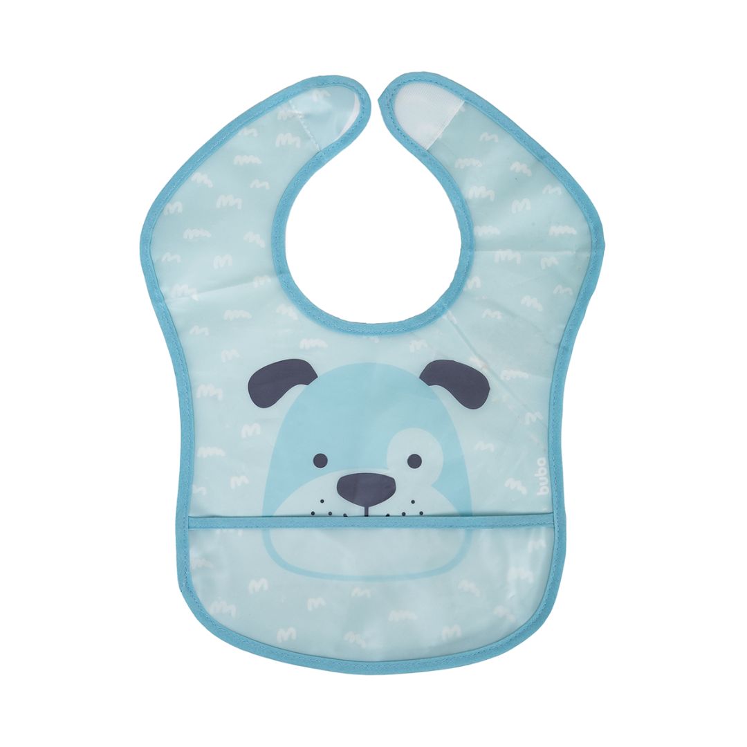 O Babador Impermeável com Pega Migalhas da Buba possui tecido impermeável e bolso pega migalhas.