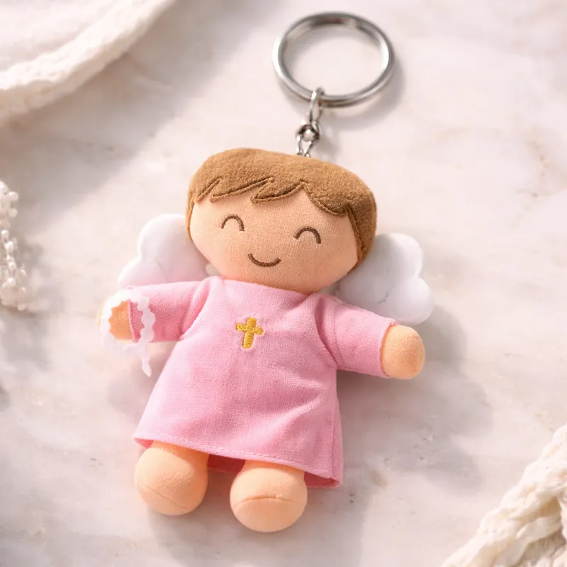 Chaveiro Religioso de Pelúcia Bordado Anjinho da Guarda Rosa Bebê - Zip