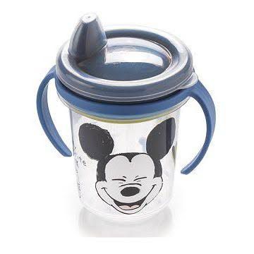 possui tampa com bico e duas alças para a criança segurar com firmeza e evitar que o liquido caia.