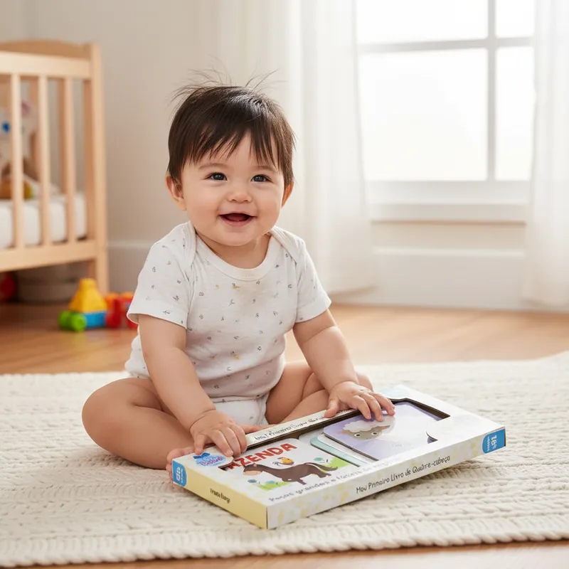 Este livro interativo estimula o desenvolvimento cognitivo, a cordenação motora, a percepção visual e a linguagem do bebê, de forma lúdica.