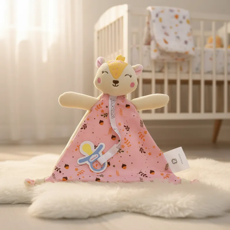 Naninha Bebê Com Prendedor De Chupeta Esquilo Bege Pimpolho