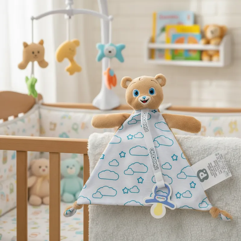 auxiliando e acalmando o bebê na hora de dormir dando a sensação de aconchego, conforto e proteção.