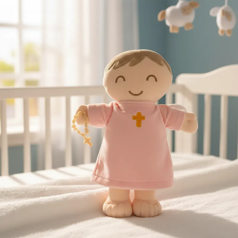 Pelúcia Boneco de Pano Bordado Anjinho da Guarda Rosa Bebê - Zip