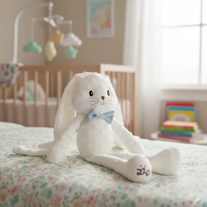 A Pelúcia Coelhinho de Páscoa Kiko Gravata Azul Bebê da Zip, confeccionada com tecido macio e texturizado, ideal para abraços aconchegantes. Com detalhes bordados, laços delicados e orelhas longas, é perfeita para presentear, decorar o quarto infantil ou se tornar a companheira favorita das crianças.